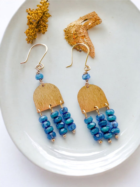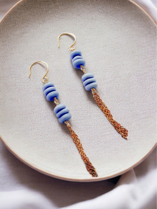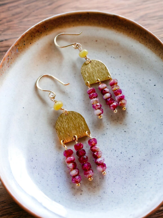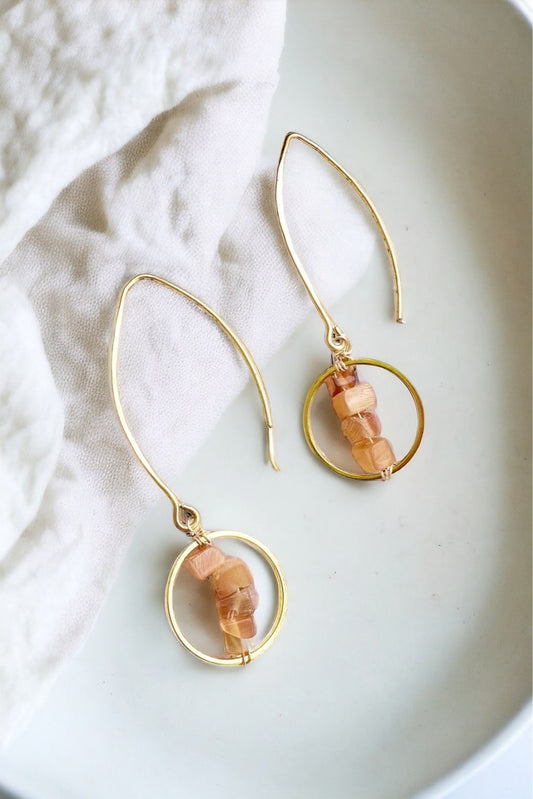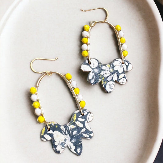 Black White Stripe & Sepia Colorblock Teardrop Earrings
