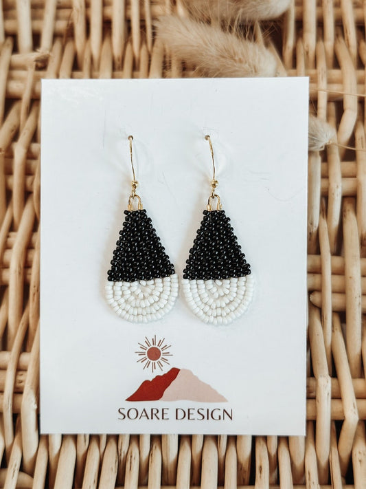 Black & Cream Colorblock Teardrop Earrings