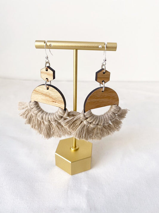Sand Circle Macrame Earrings