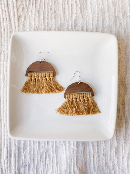 Mustard Macrame Fringe Earrings