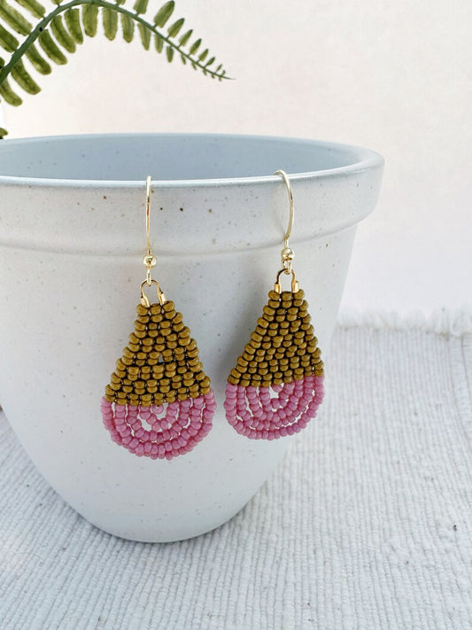 Olive & Lavender Colorblock Teardrop Earrings