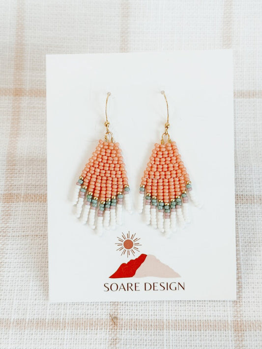 Sweetheart Tiny Fringe Earrings- Coral