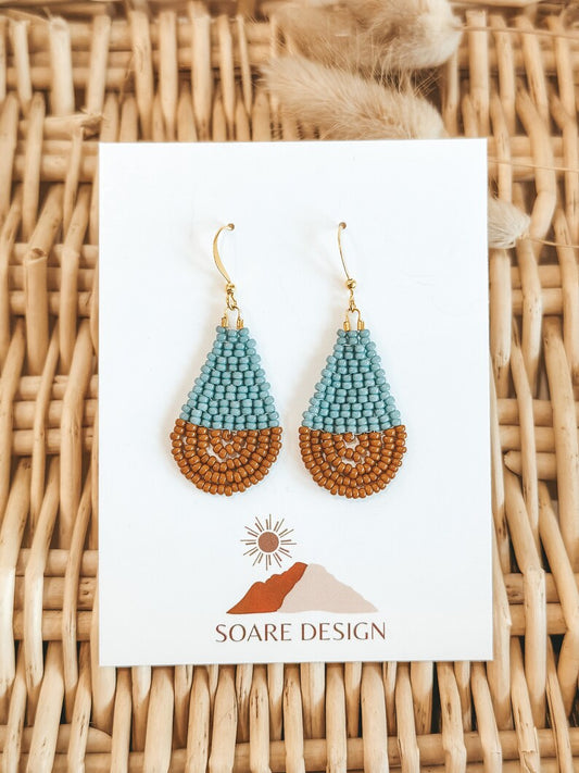 Denim Blue & Sepia Colorblock Teardrop Earrings