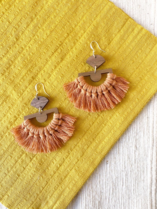 Terra Cotta Macrame Fan Earrings