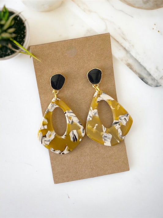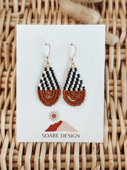 Black White Stripe & Sepia Colorblock Teardrop Earrings