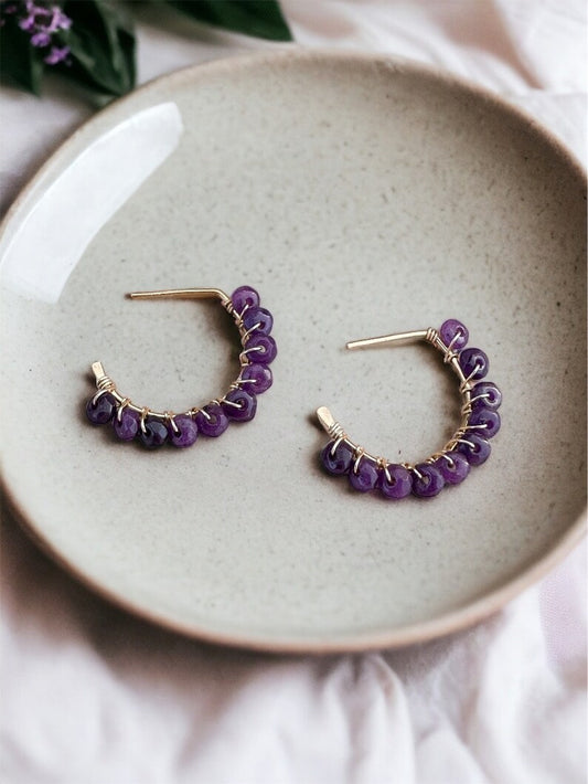 Diana Amethyst Crescent Hoops