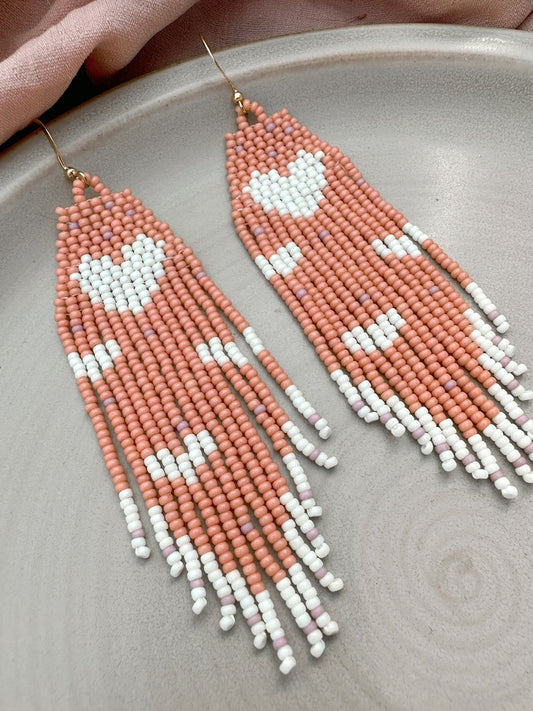 Lots of Love Earrings- Coral & Cream