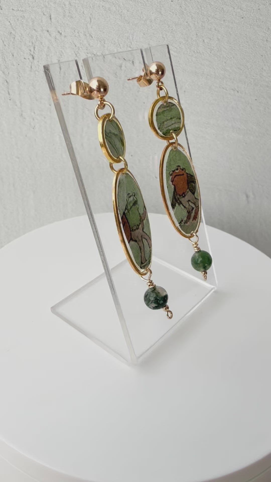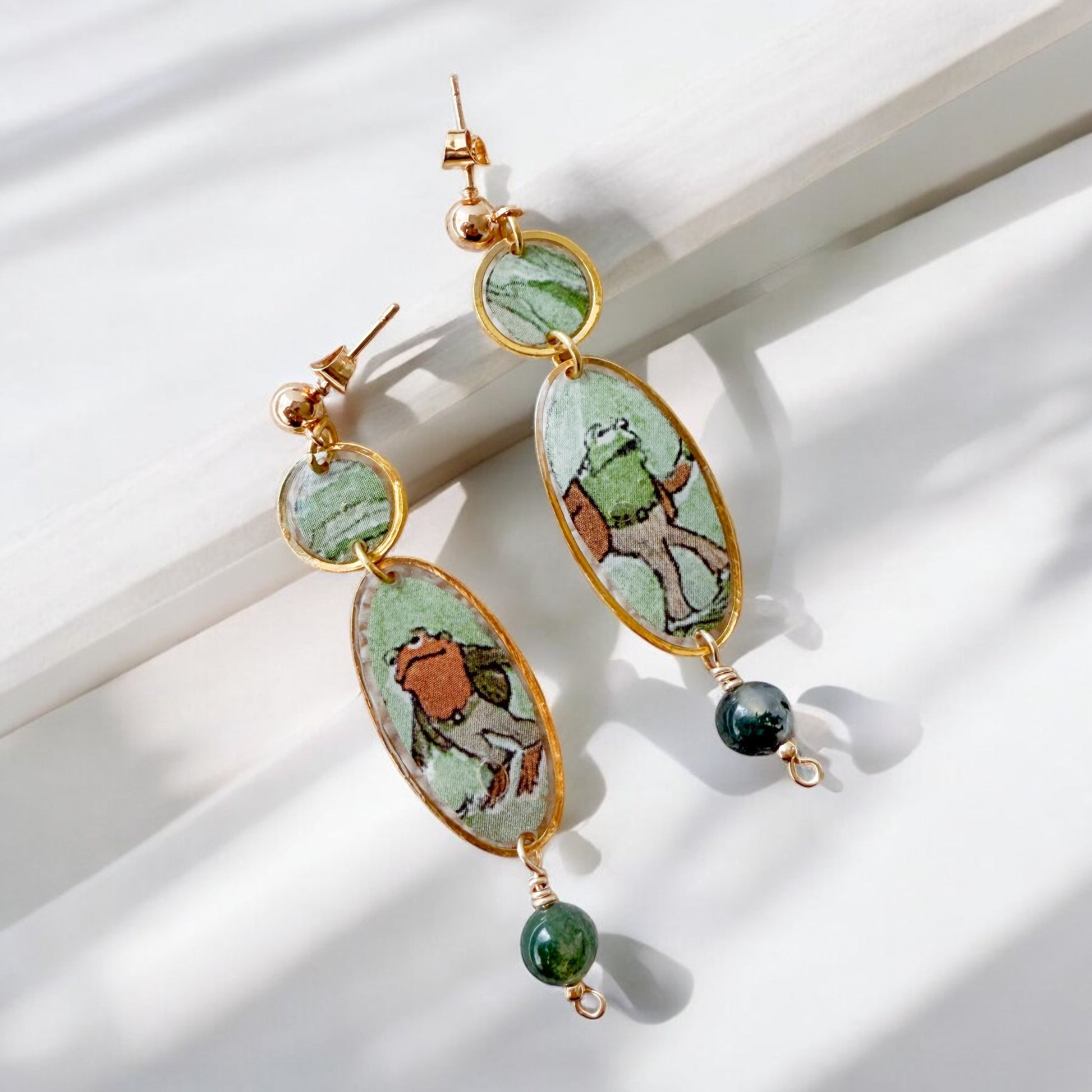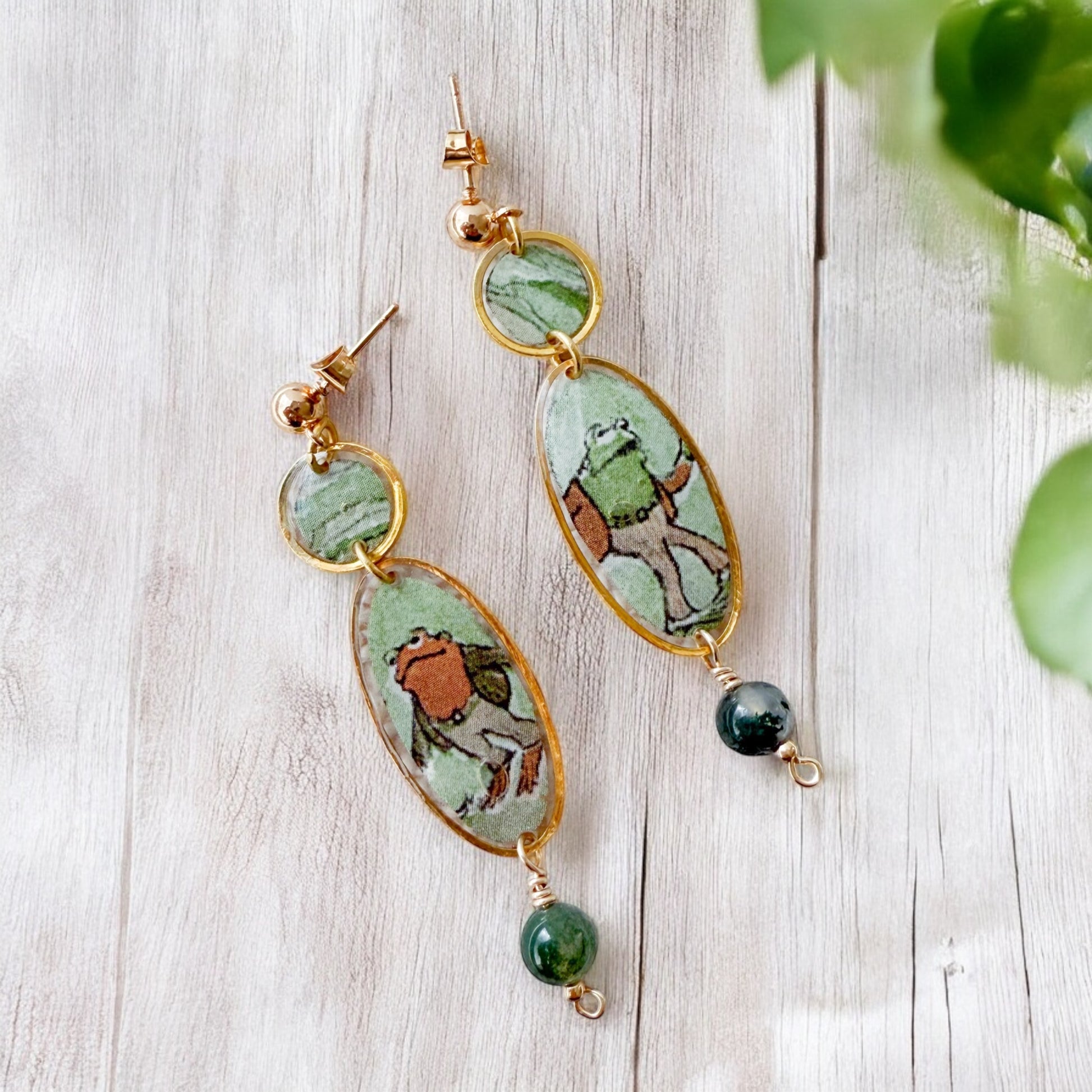 The Found Fable collection is handmade from thrifted books, upcycled into wearable art. The images are cast in crystal clear resin, and feature a variety of brass and other metal components. Each piece is unique and one of a kind!