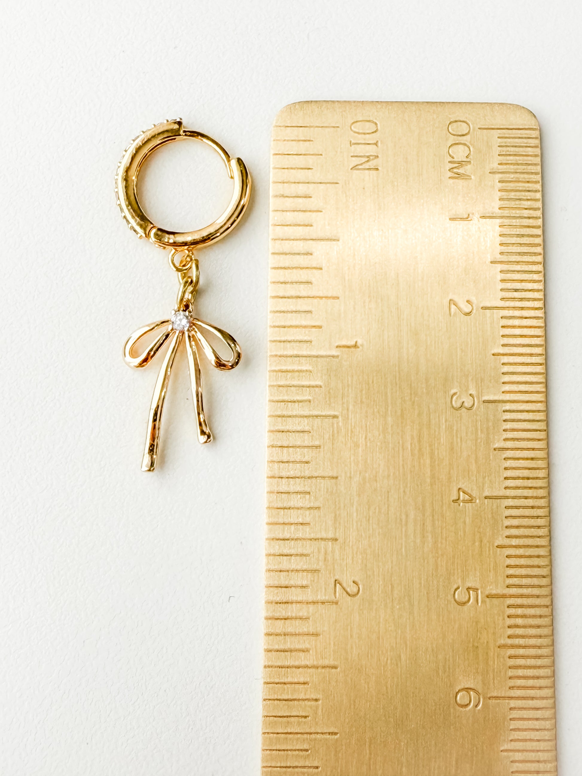 Delicate and romantic, these Audrey Bow earrings add a touch of timeless femininity to any look. Each graceful ribbon dangles softly from a petite hoop, accented by a sparkling crystal at the center — a subtle nod to classic elegance with a modern glow.