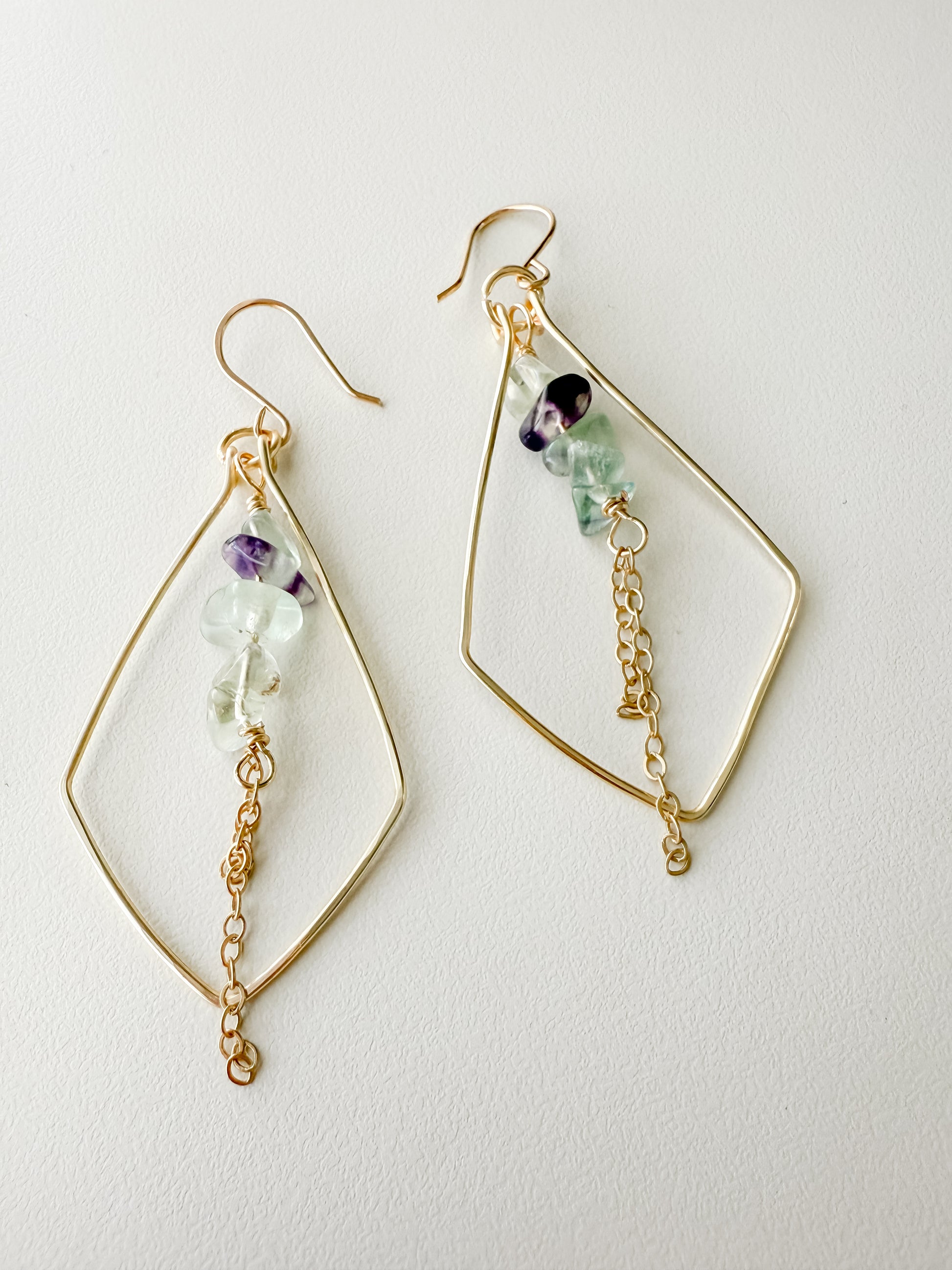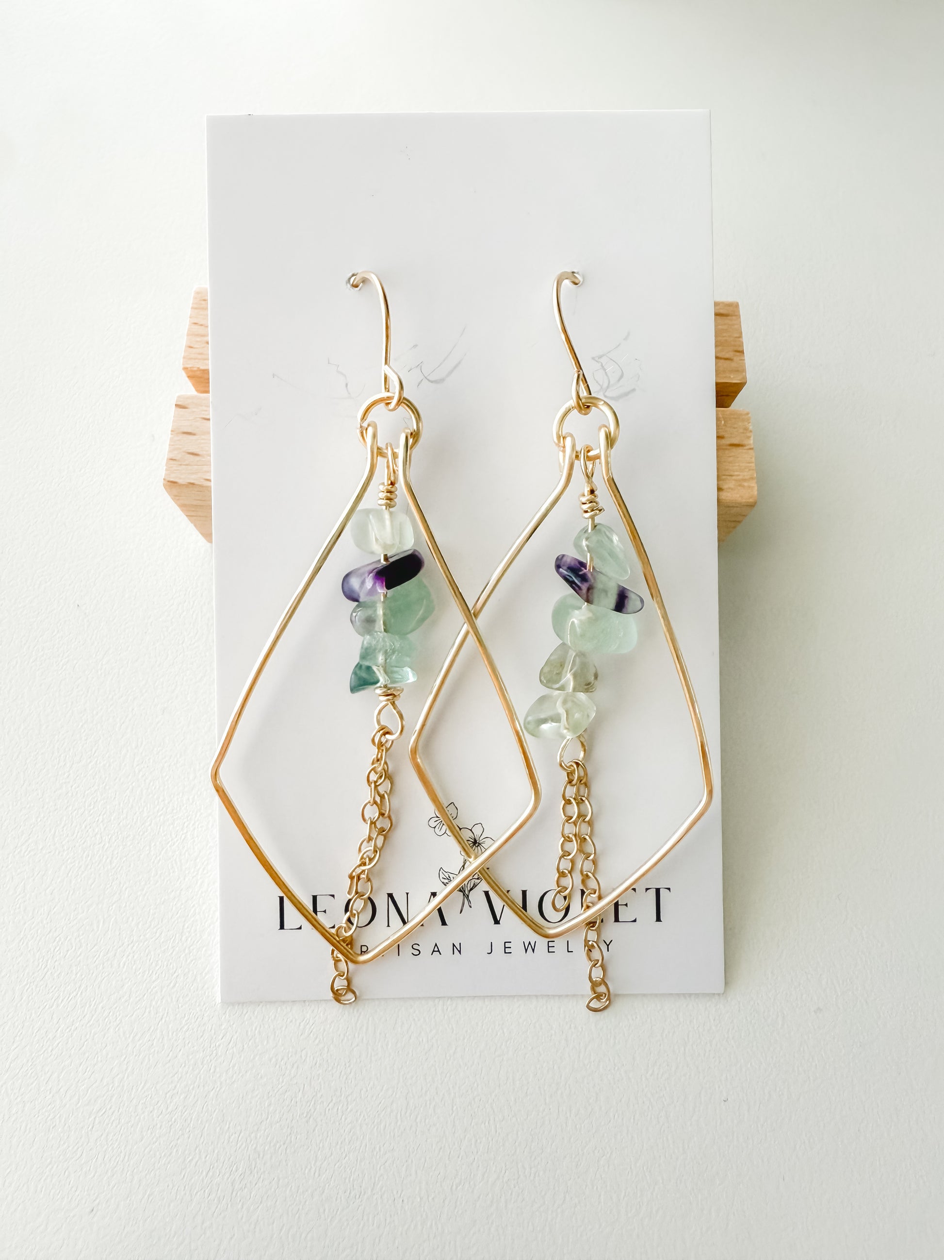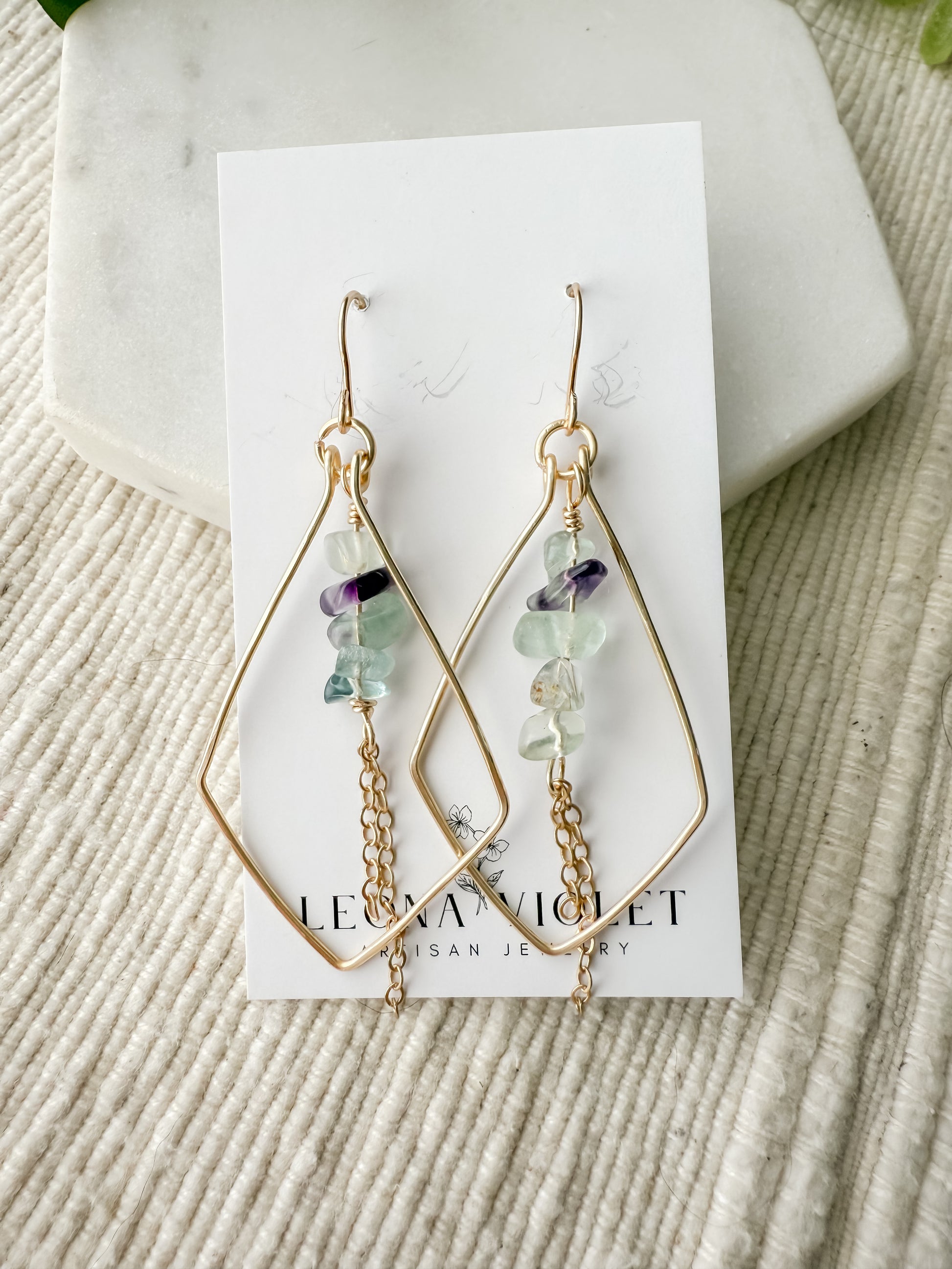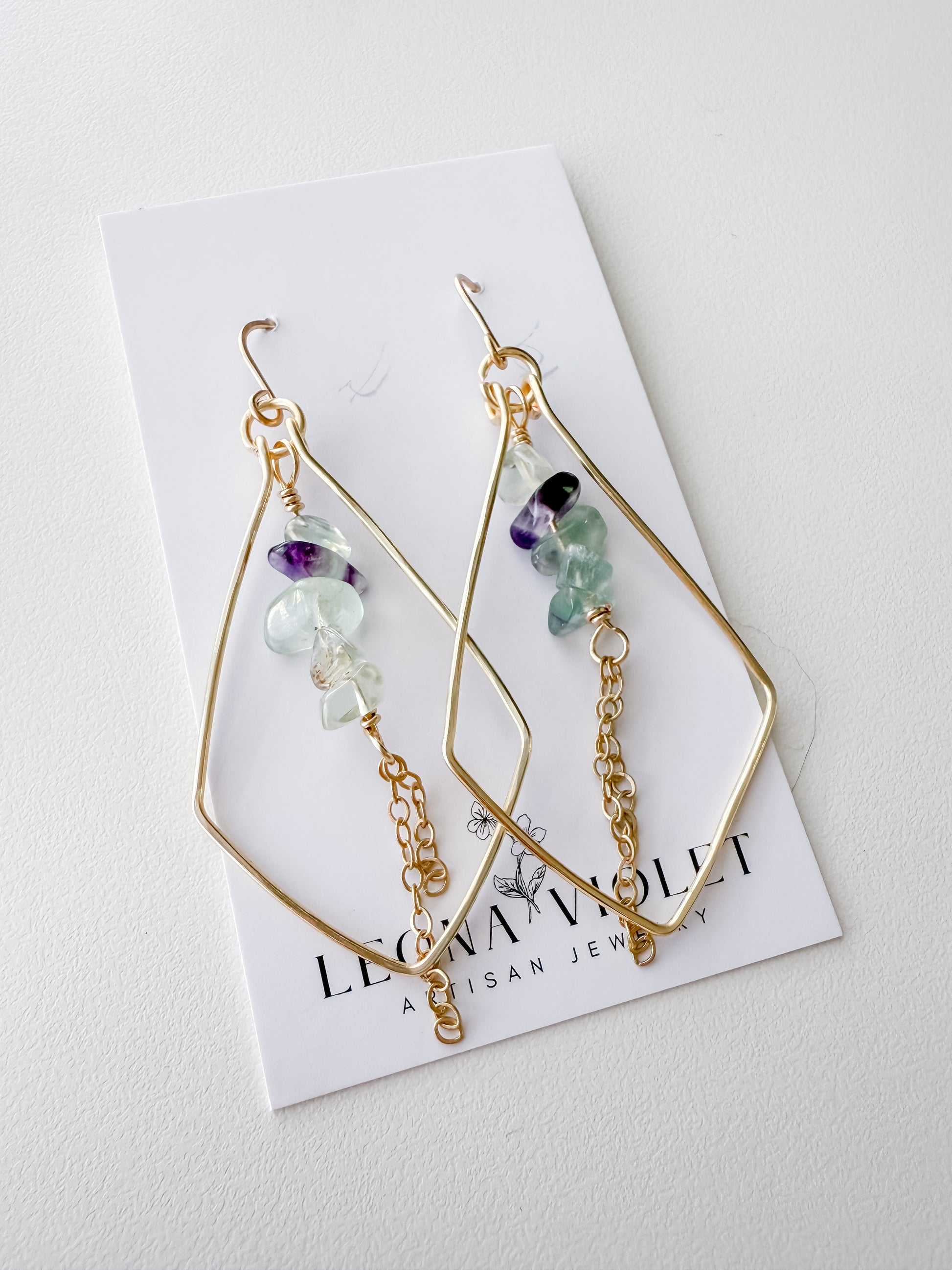 The Florence earrings exude a timeless elegance, handcrafted with brass wire and adorned with genuine fluorite gemstones.