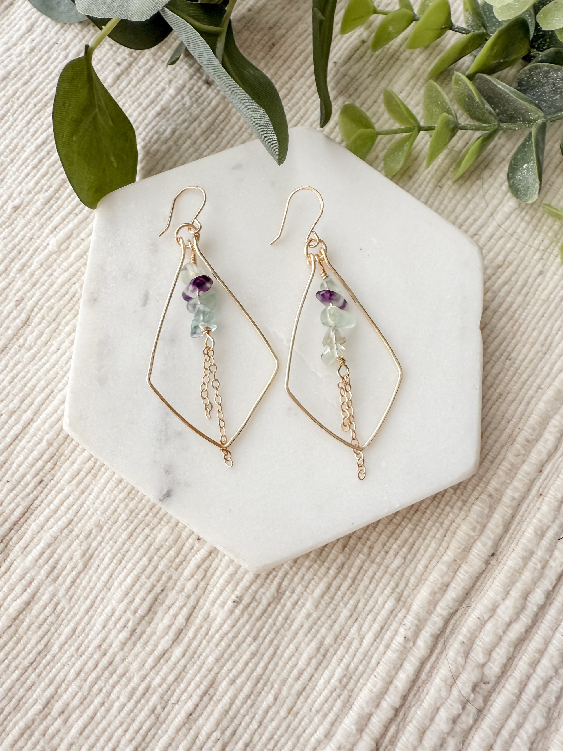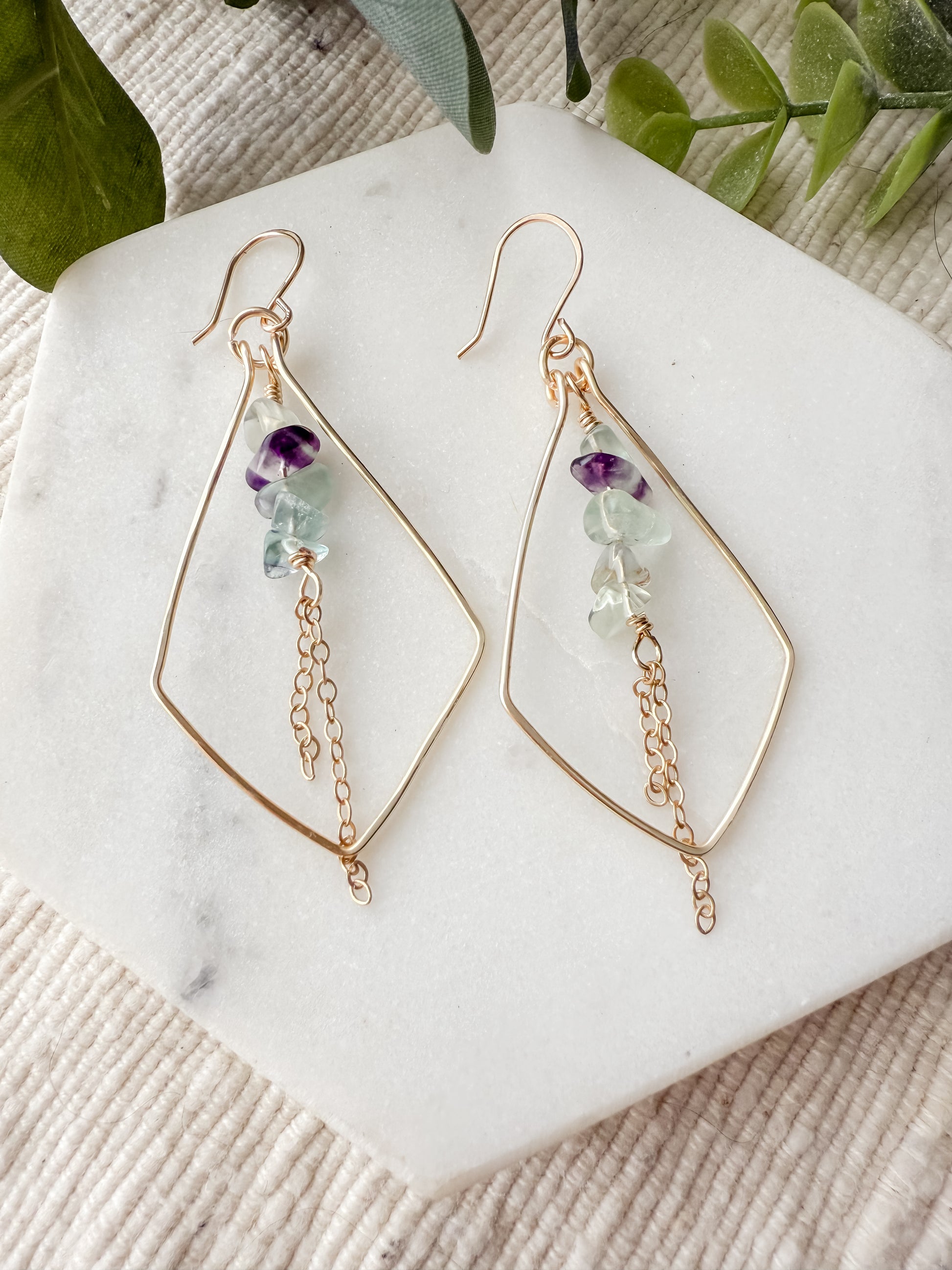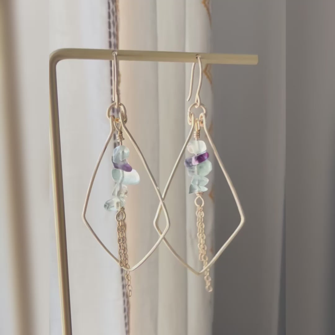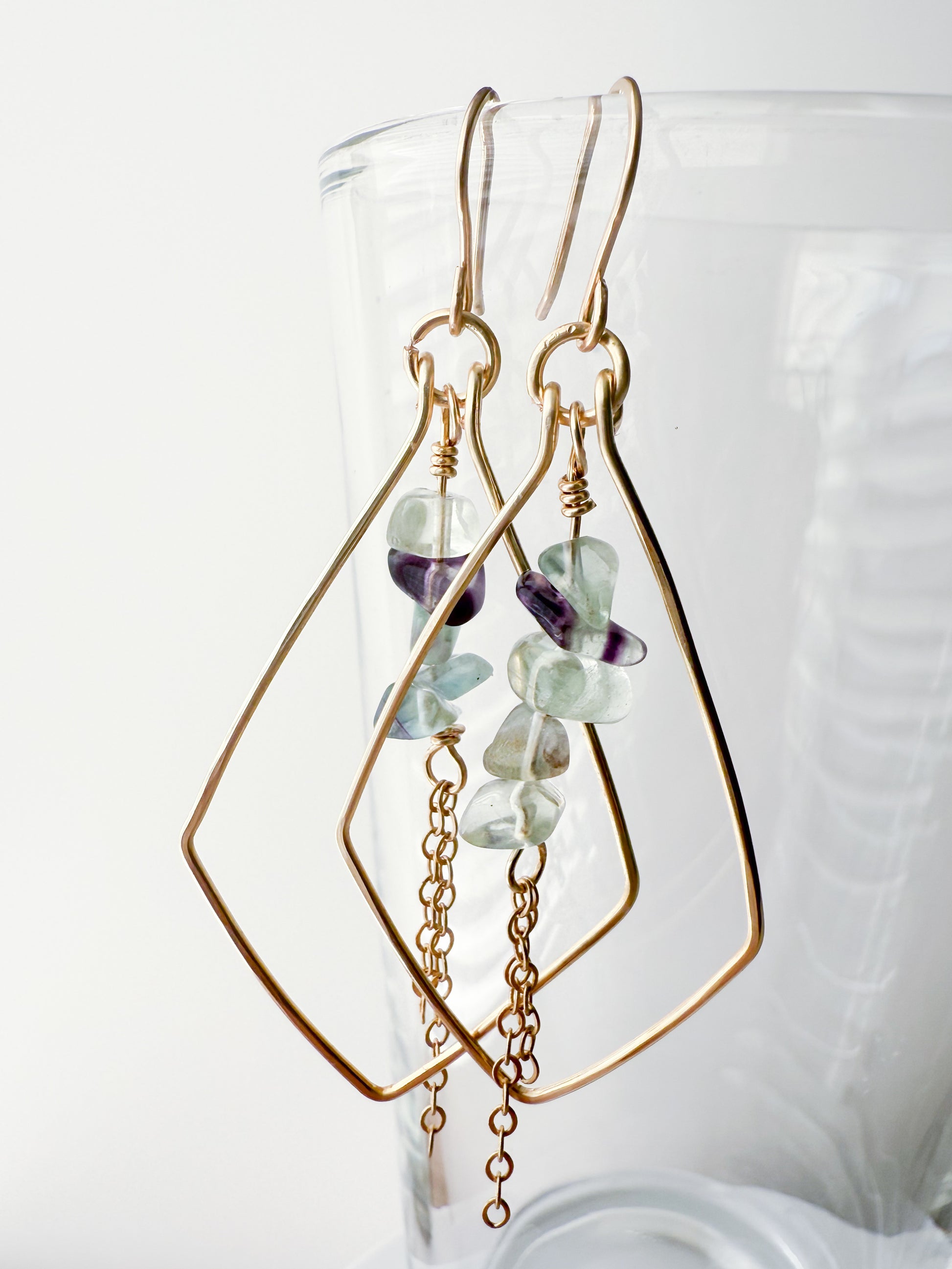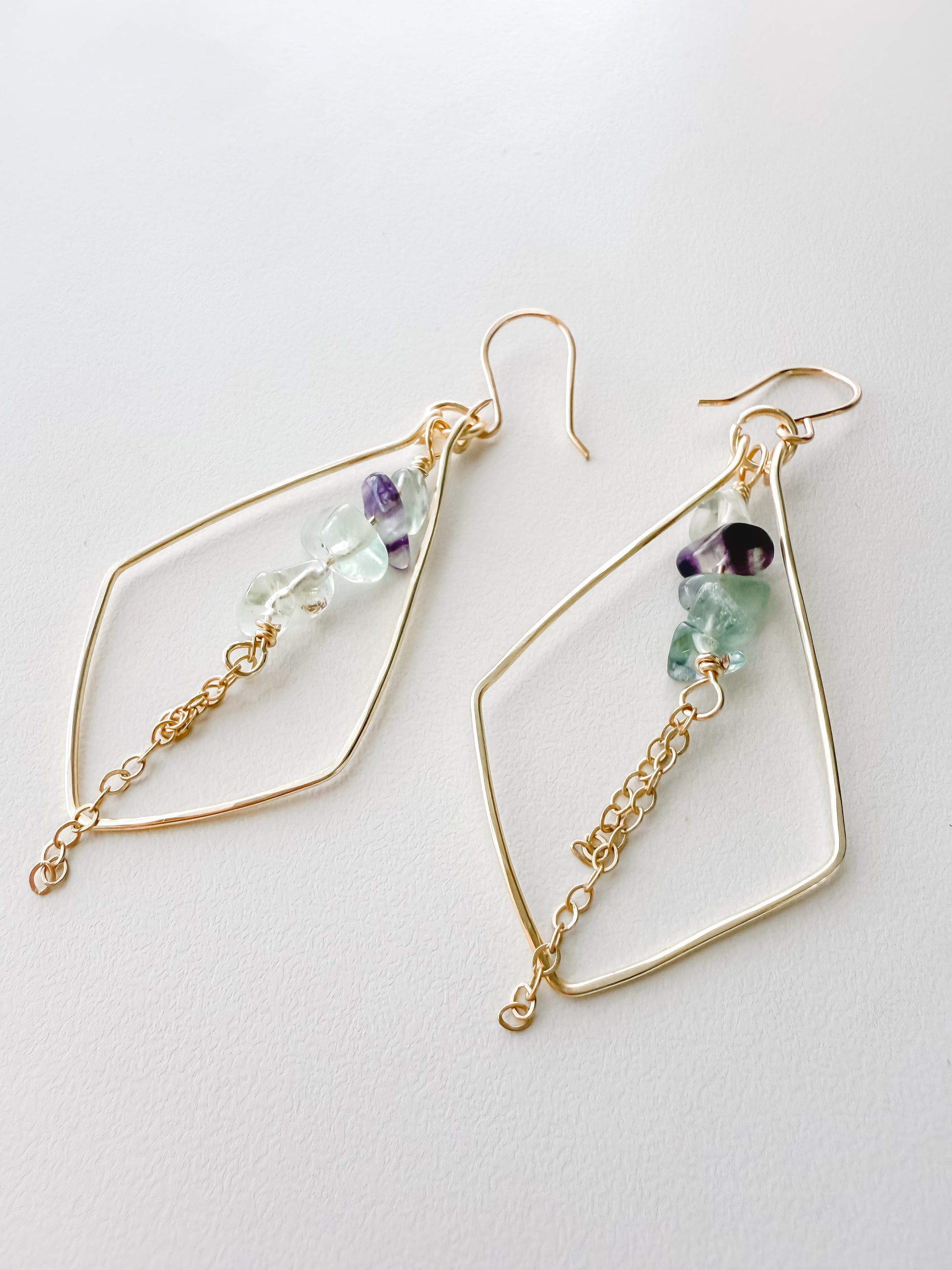 The Florence earrings exude a timeless elegance, handcrafted with brass wire and adorned with genuine fluorite gemstones.