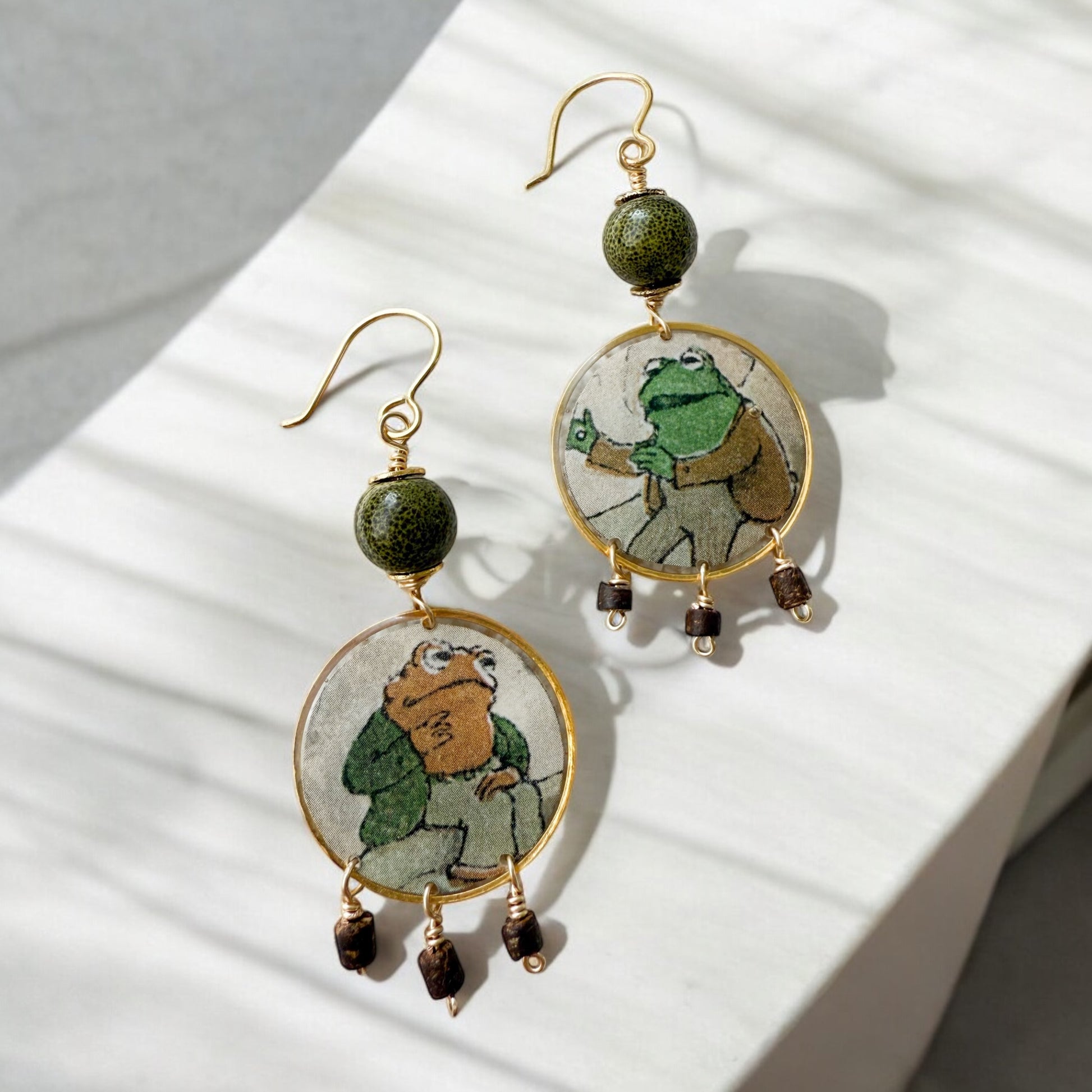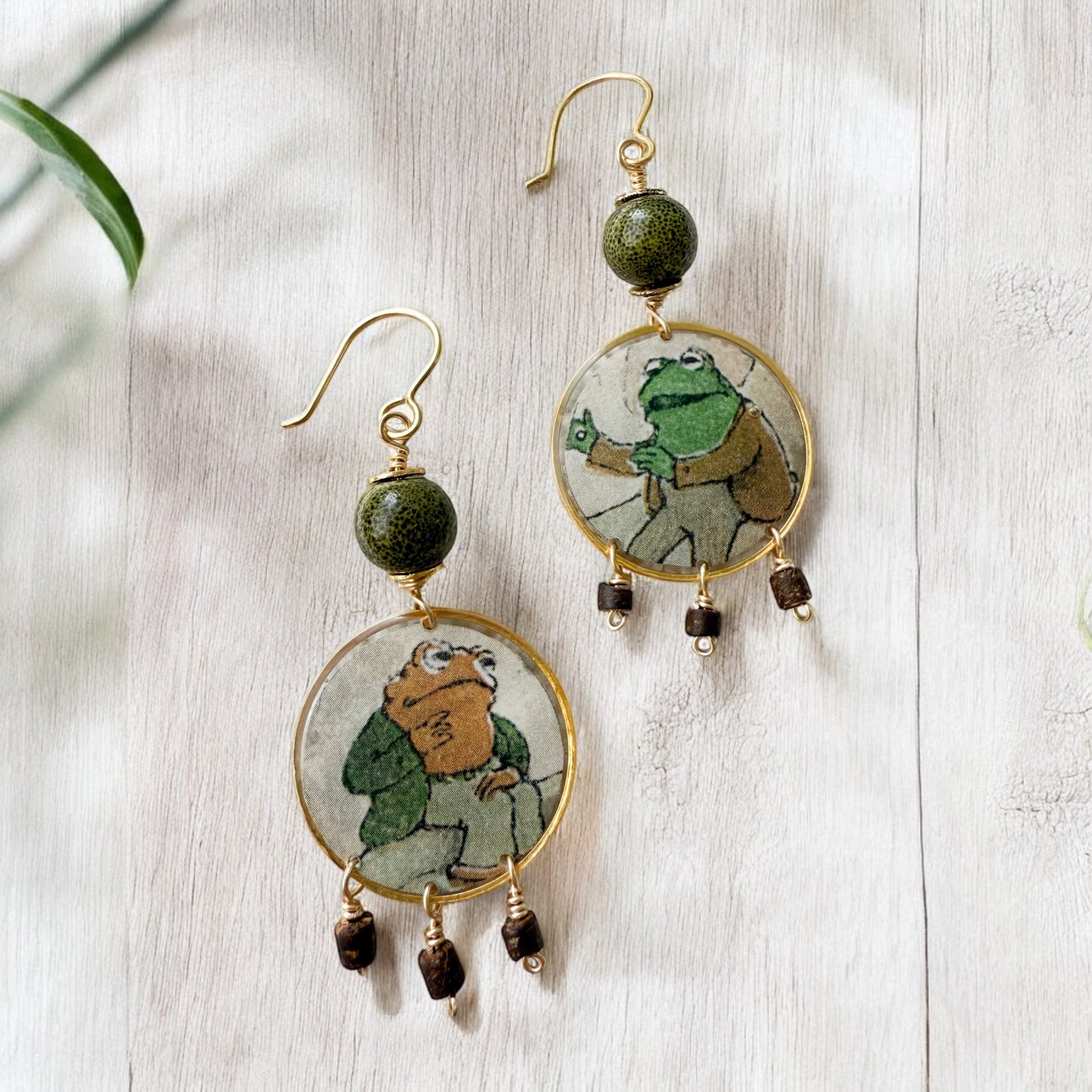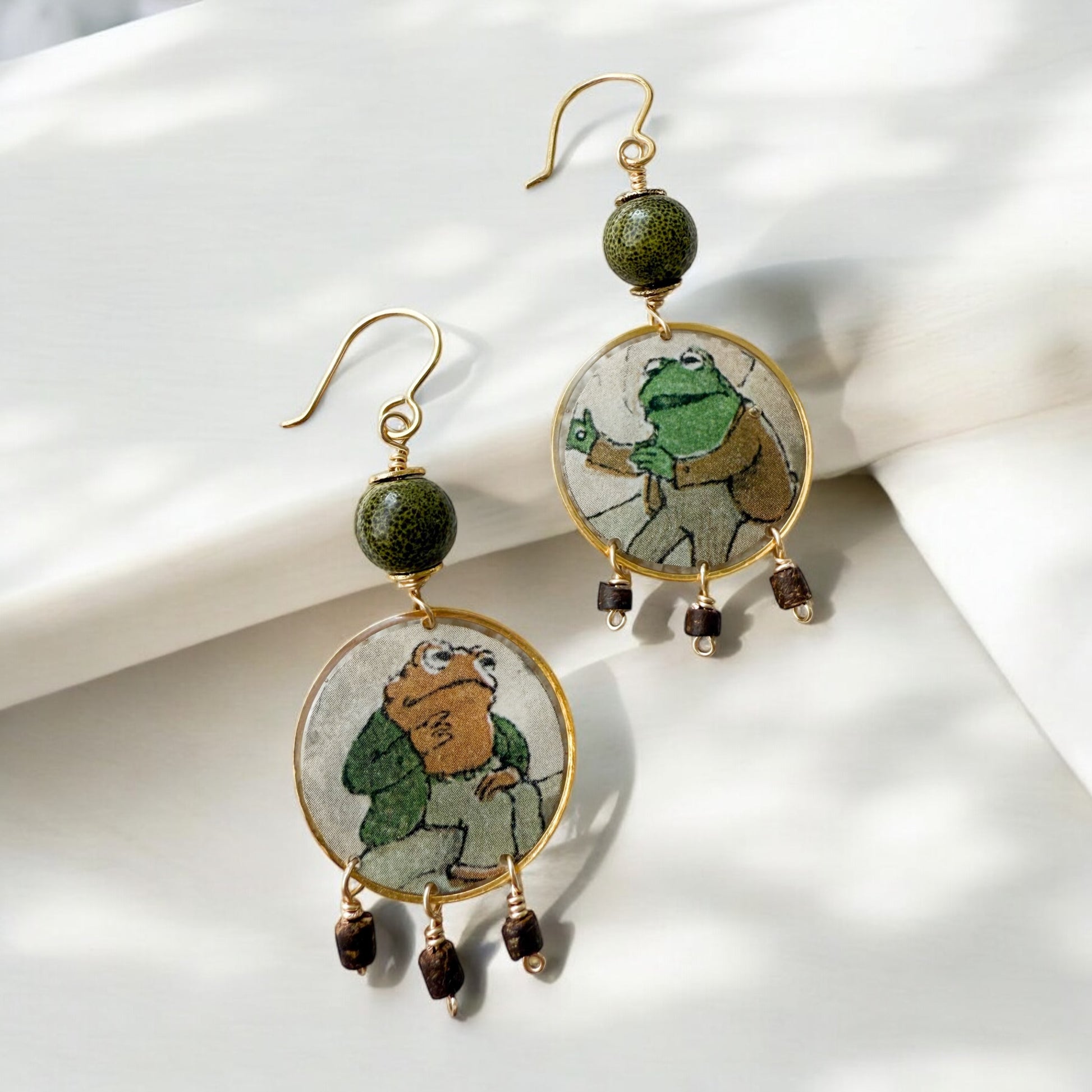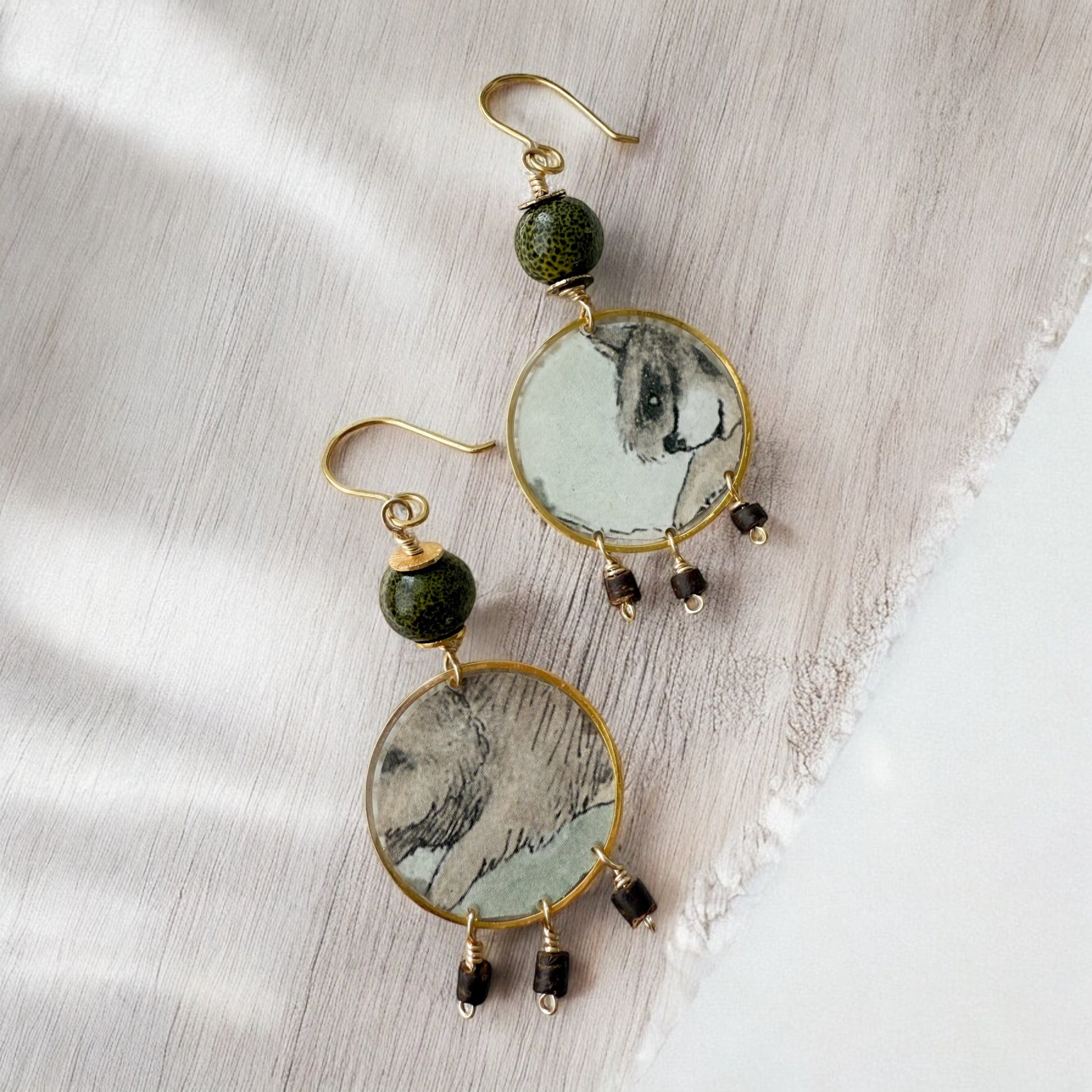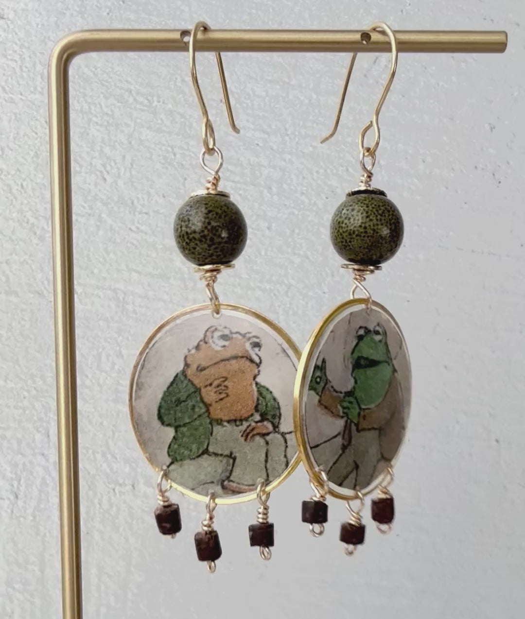 The Found Fable Collection of jewelry is handmade from thrifted books, upcycled into wearable art. The images are cast in crystal clear resin, and feature a variety of brass and other metal components. Each piece is unique and one of a kind!