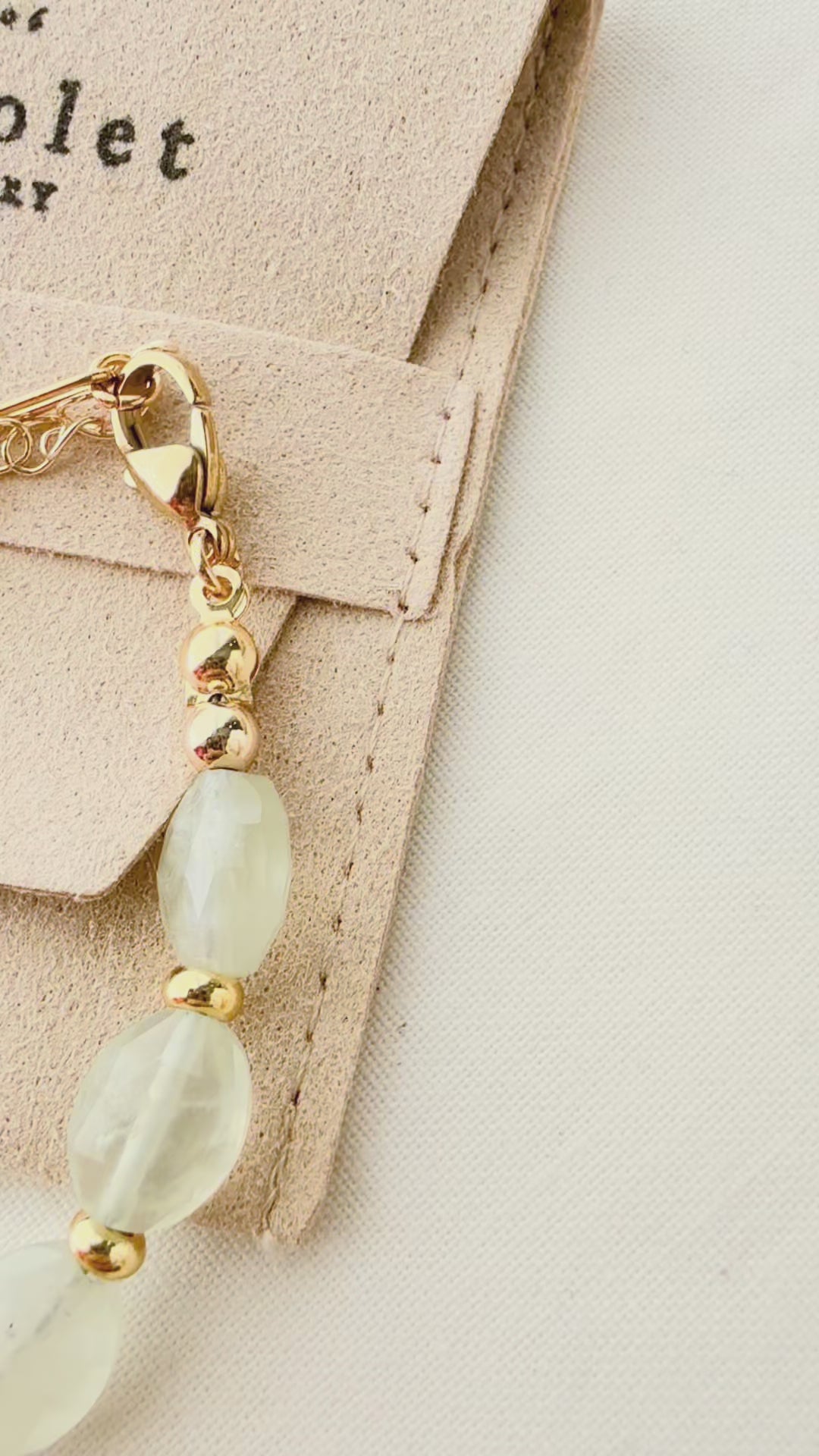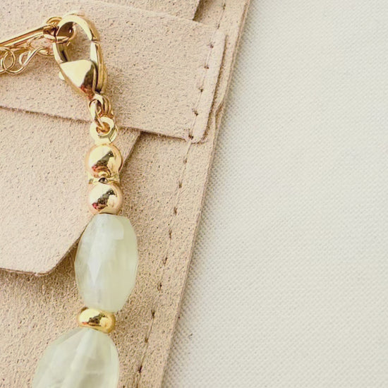 The Meadowlight Bracelet captures the quiet beauty of nature just after sunrise — soft green hues, gentle translucence, and a warm golden glow.