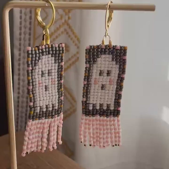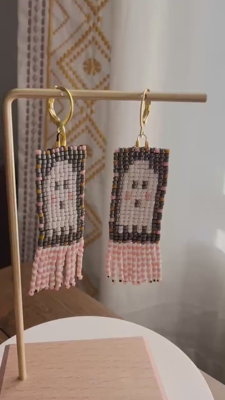 Add a touch of spooky charm to any outfit with these handcrafted beaded earrings. Meticulously designed to catch the eye, these earrings feature a girlish Halloween inspired color palette. Each bead is hand-selected and carefully woven to create a piece of wearable art.
