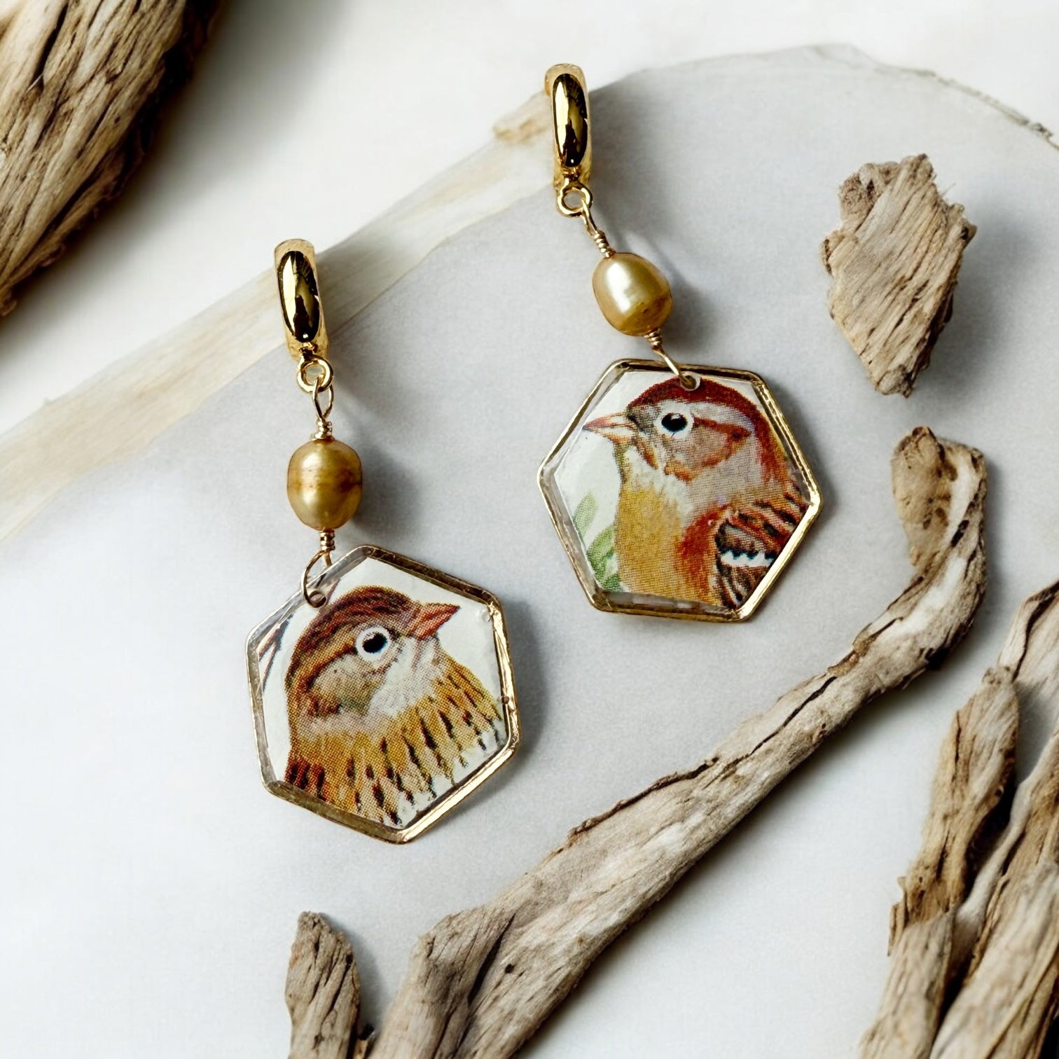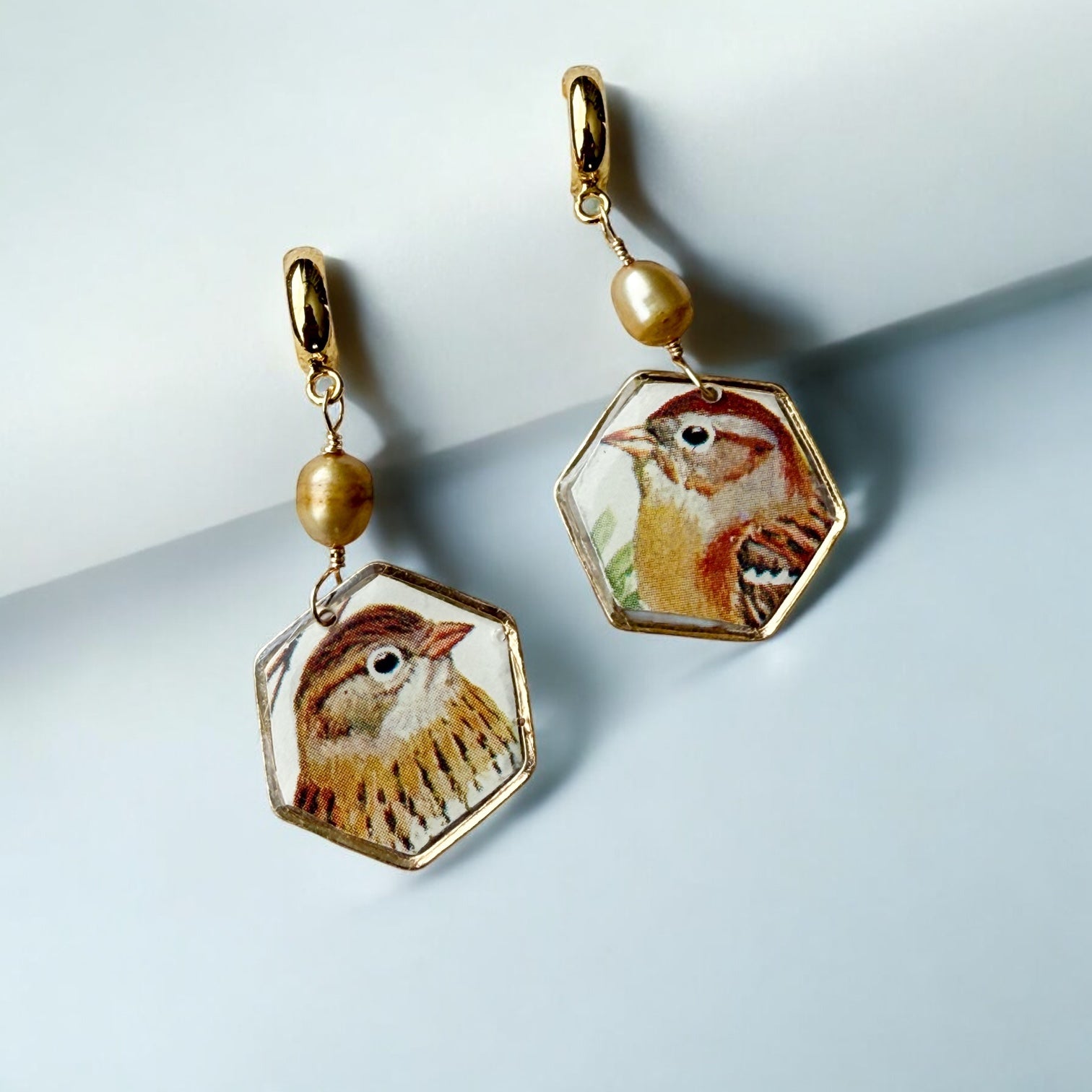 The Found Fable collection is handmade from thrifted books, upcycled into wearable art. The images are cast in crystal clear resin, and feature a variety of brass and other metal components. Each piece is unique and one of a kind!