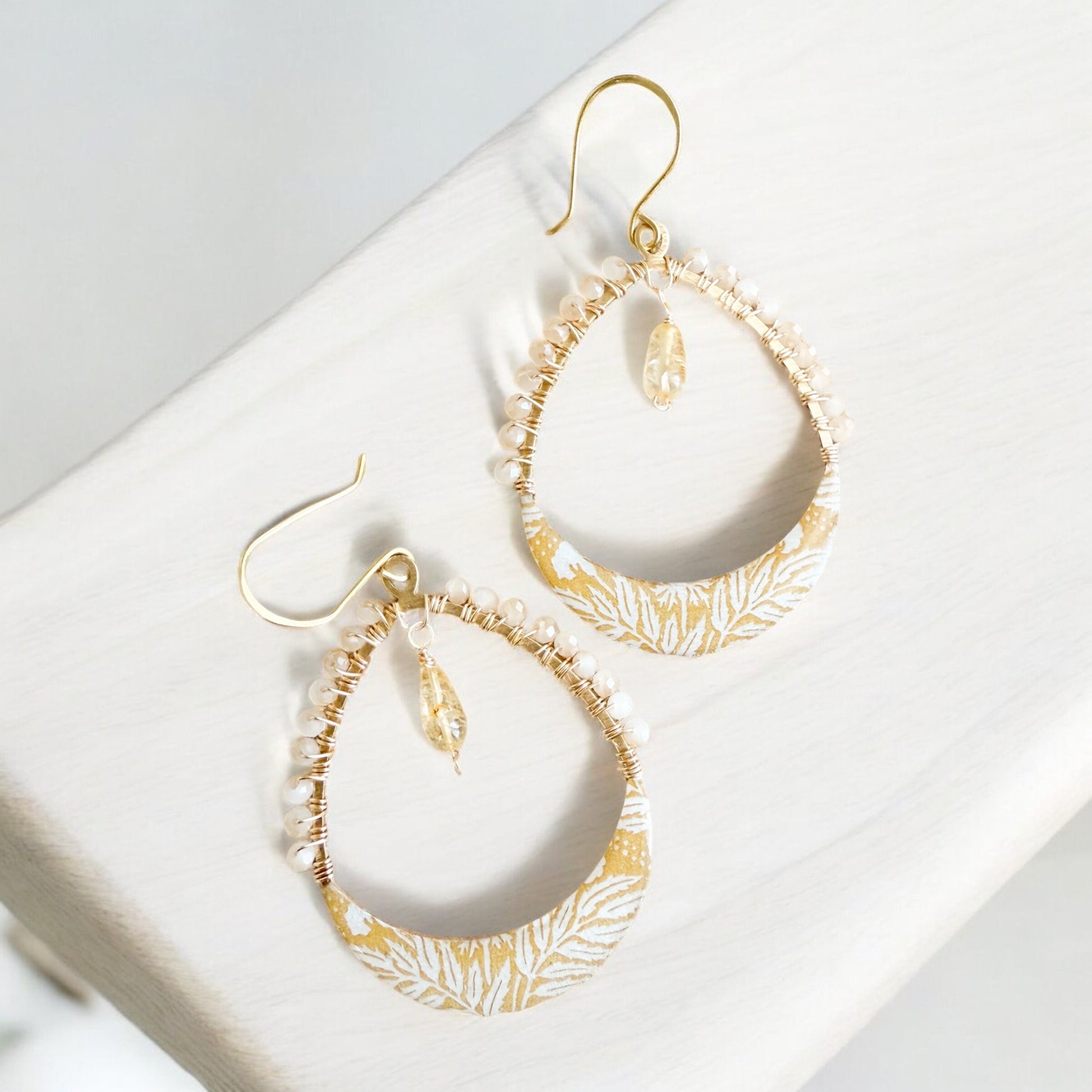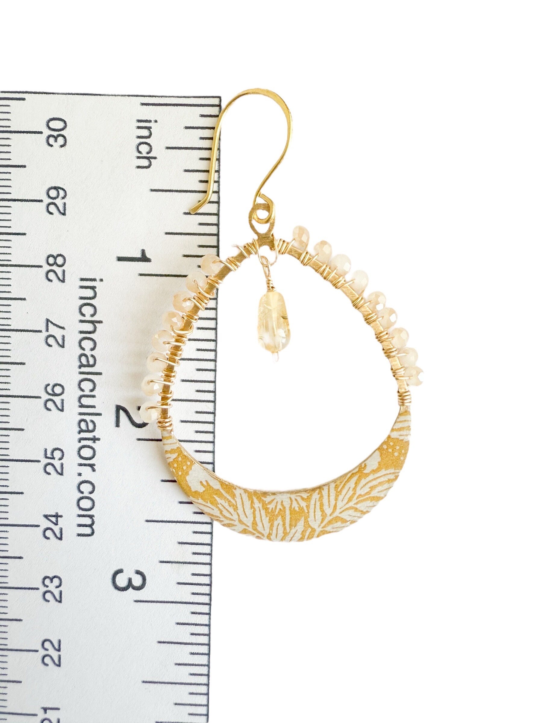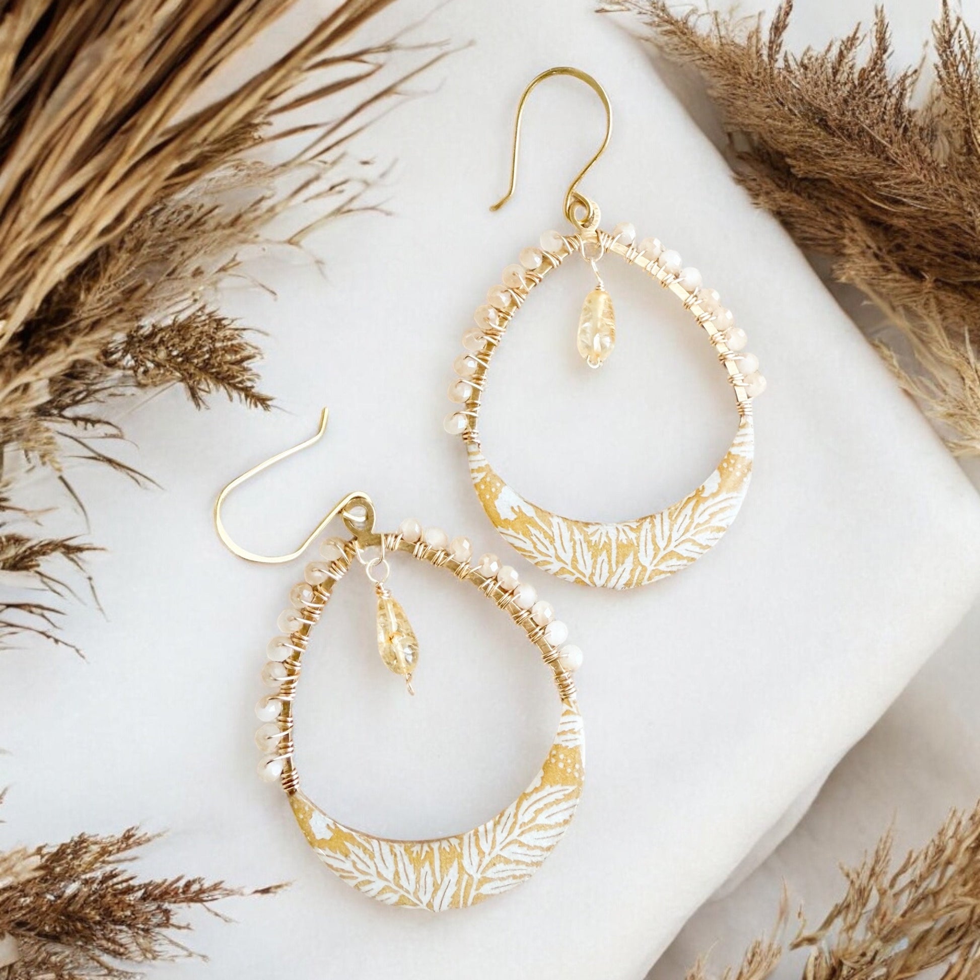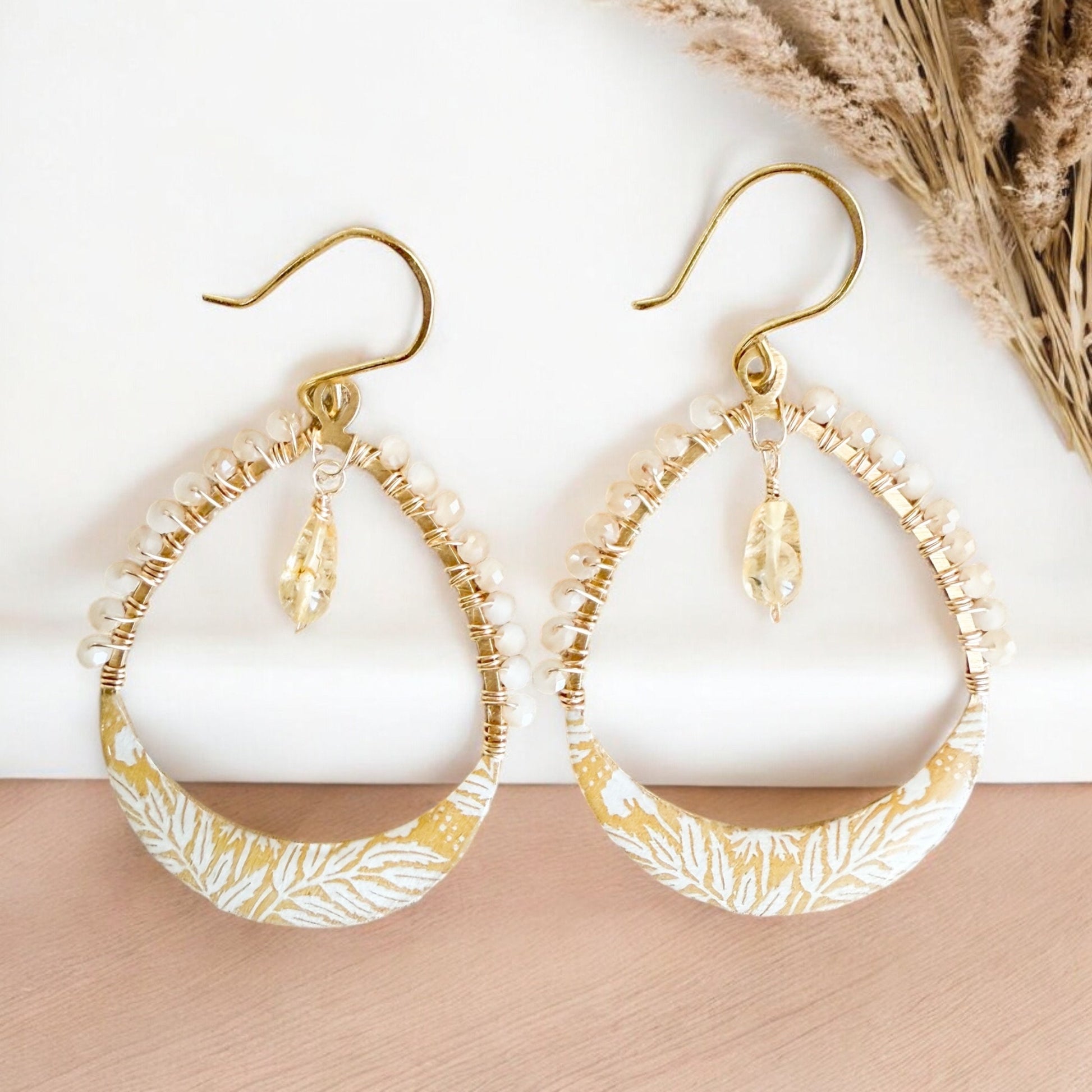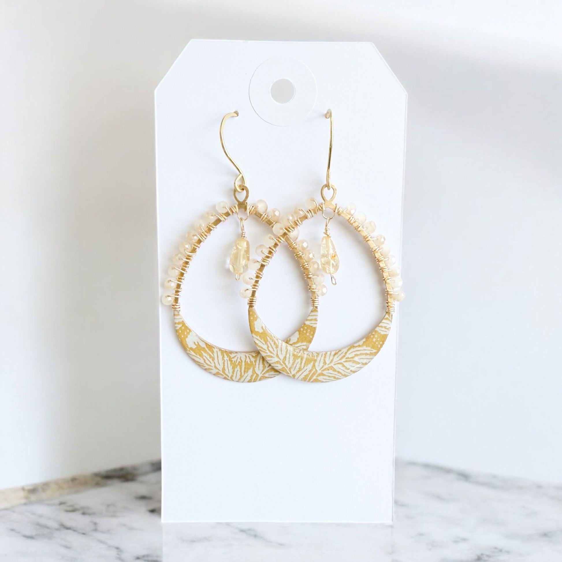 🌼 Meet Tessa, the earrings that embody pure sunshine! With her playful design and sparkling details, she brings a touch of happiness to any outfit. Perfect for adding that bright, cheerful flair to your day! ☀️ The Tessa earrings are handcrafted with a unique combination of materials, including decoupaged brass sealed in resin, accented by glass beads and a genuine citrine gemstone drop. These earrings are lightweight and comfortable to wear, making them perfect for any occasion. The combination of natural materials and artistic craftsmanship make these earrings a statement piece that can be dressed up or down. The Tessa earrings feature hand forged brass ear wires. 14K Gold Fill ear wires available here for an additional charge for sensitive ears.